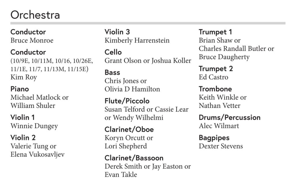 Synopsis from the Licensor or Theatre Company: It’s almost like being in love! Dance your way back in time to one of the most romantic musicals ever written, Lerner and Loewe’s Brigadoon. Americans Tommy and Jeff are hiking the Scottish Highlands, when out of the mists they stumble upon the enchanting village of Brigadoon, which appears for only one day every 100 years. But this dreamlike place is far more than it seems—and those who fall in love there might never be the same. From the writers of My Fair Lady and Camelot comes this soaring love story, full of glorious ballet and favorite tunes like “Come to Me, Bend to Me,” “The Heather on the Hill” and “Almost Like Being in Love.” This production features an exquisite new adaptation, which enhances all the romance and magic that makes Brigadoon a truly timeless masterpiece.