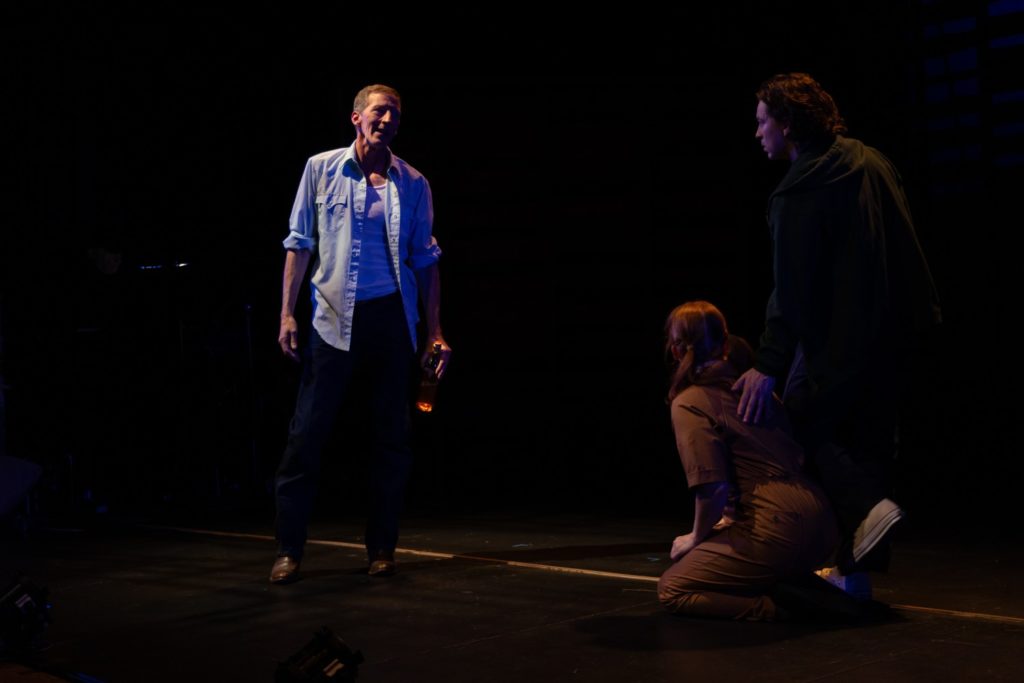 • Town Hall: The second act opened with a town hall scene that ingeniously drew the audience (seated in the round) into the role of the townspeople. Geoffrey Alm’s fight choreography created a realistic mob scene, capturing the terrifying momentum of herd mentality with convincing falls and visceral intensity.