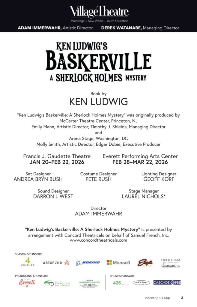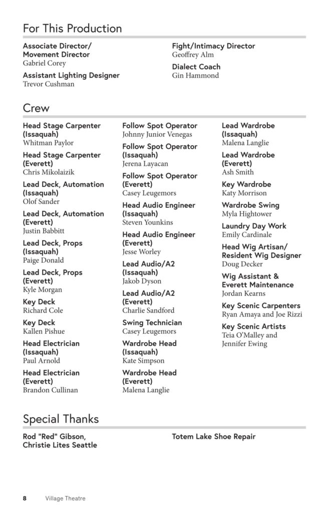- Stage Size: McCaw Hall’s expansive stage felt slightly oversized for the scenic design by Vita Tzykun. Though I’ll take that over the alternative (a stage too small). If anything, the scale pushed the designers toward an solution in one scene where they concentrated the snow effect into a tight fifth of the stage, which turned a potential limitation into something visually interesting.