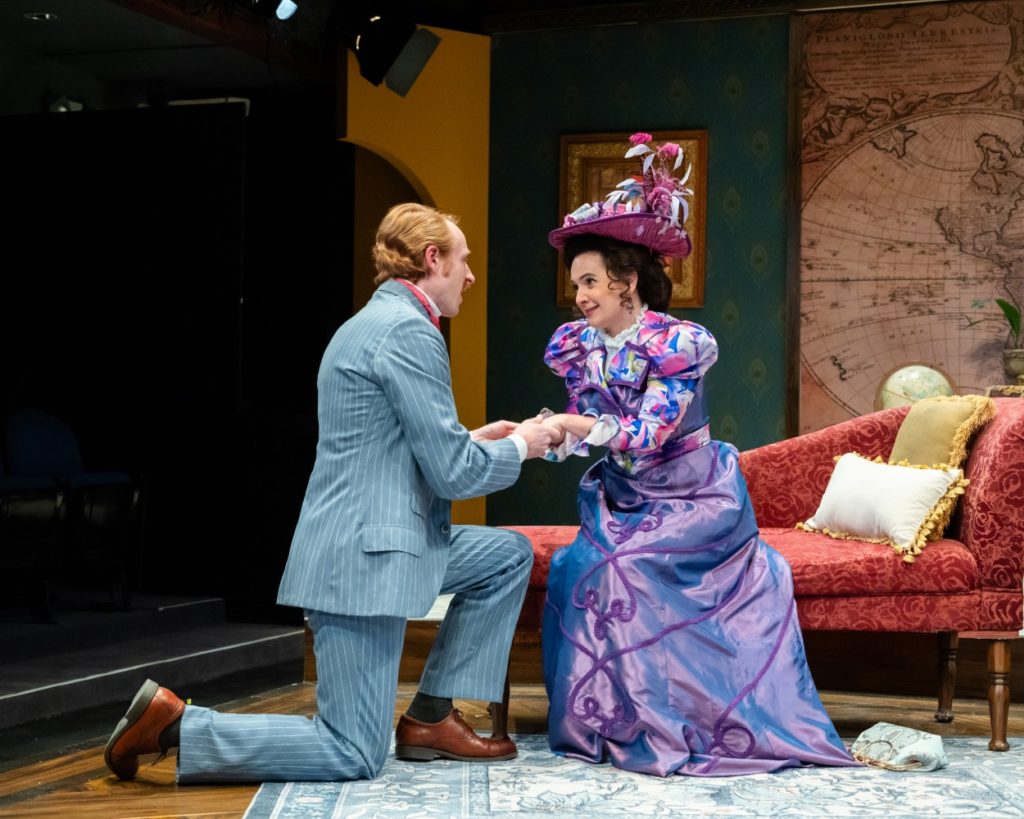 Calder Jameson Shilling as Jack Worthing and Kelly Karcher in The Importance of Being Earnest at Taproot Theatre (September 2025). Photo by Robert Wade.