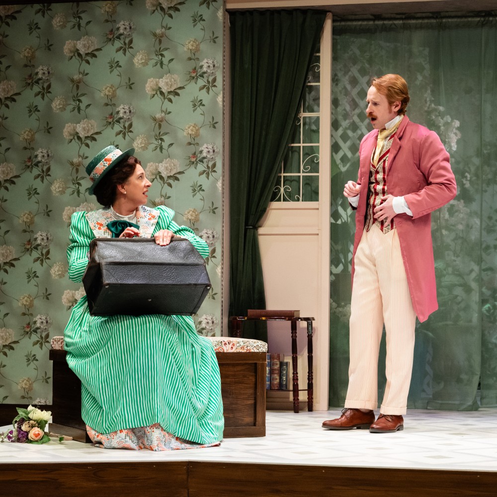 • Miss Prism: Jonelle Jordan delighted the audience in a role that felt perfectly in her wheelhouse as Miss Prism evoking the same Austen-esque charm she brought to Sense and Sensibility. Her feigning flirtations with Reverend Chasuble (played by Nik Doner) were a joy to watch, especially the little moments when she exclaimed a subtle yelp when encountering a simple stair step. This prompted the ever-gallant reverend to offer his arm. Gurl was thirsty!