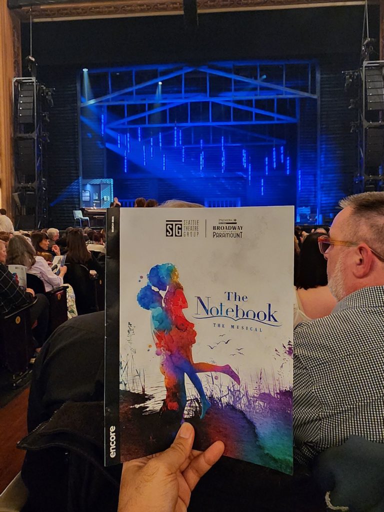 Elevator Thoughts (aka Tweet): The Notebook musical national tour at Paramount Theatre from Broadway Across America and Seattle Theatre Group. The chemistry between all three versions of the leads (teenage/adult/elderly) felt like one continuous soul. Alzheimer’s theme was woven into the non-plot portions of the production. Appreciated the intentional inclusive casting. Didn’t expect real water on-stage for the iconic rain kiss scene!