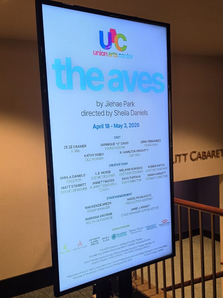 Elevator Thoughts (aka Tweet): Jiehae Park’s the aves what-if dialogue play at Union Arts Center. Robbie Matos’s lighting design was the star of the show! Complemented by LB Morse’s scenic design. Closes 5/3/26.