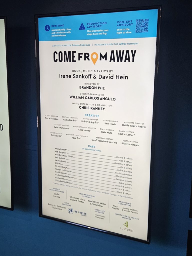 Come From Away musical returns to its second home at Seattle Rep (original co-producing theatre company). A beautiful very human testament of resilience and selfless generosity that feels urgently needed today. Nearly sold-out run, but same-day standby, rush, and standing-room tickets are available. Performing through 1/4/26.