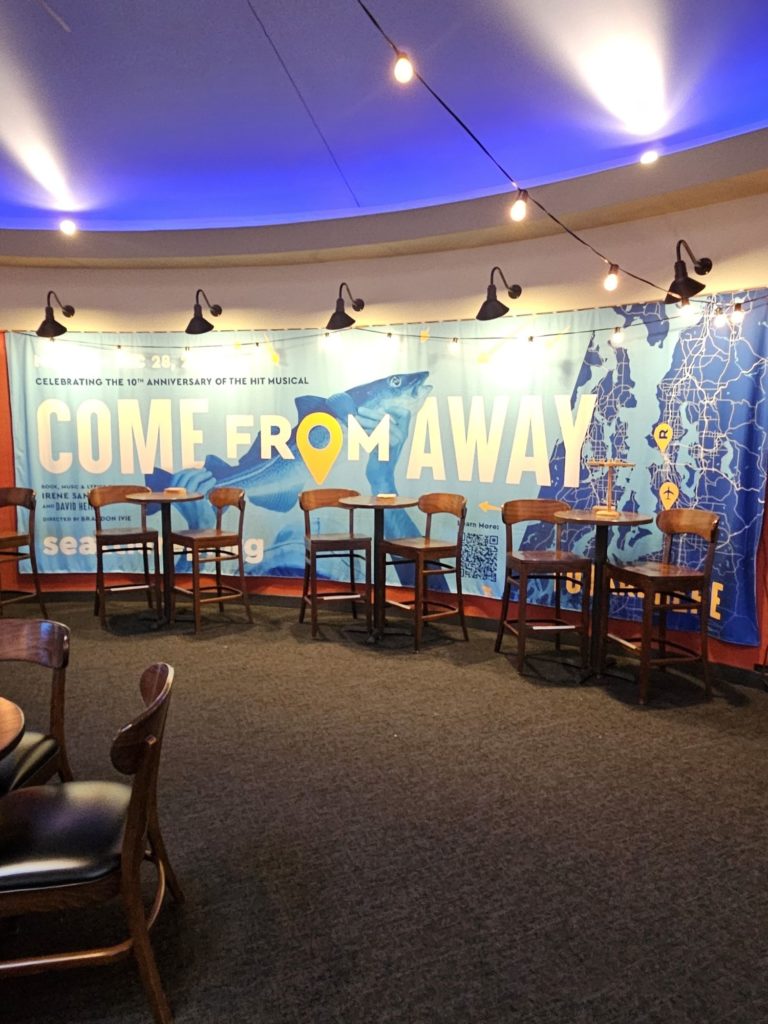 Parking: When I don’t walk to the theatre or park on the street, I park in the paid garage at the Motif Hotel northwest of the theatre. The entrance is on 5th Ave. Do NOT park in the APA Coast Seattle Downtown Hotel garage (entrance on 6th Ave). That’s where most of the audience (and I think the subscribers) parks, so it’s a nightmare to leave. However, the APA Coast Seattle Downtown Hotel garage is the closest garage to the theatre and you can access the theatre through a tunnel if you want to avoid the elements. But, in my opinion, this benefit is not worth the time wasted leaving the garage.