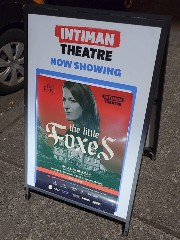 Elevator Thoughts (aka Tweet): The Little Foxes play by Intiman Theatre & The Feast. Starring Alexandra Tavares wearing Katrina Hess’s elegant aristocratic costumes in Julia Hayes Welch’s classy chessboard nightclub-themed set. Ruthless, cunning, and riveting. Don’t miss it before the closing performance this weekend!