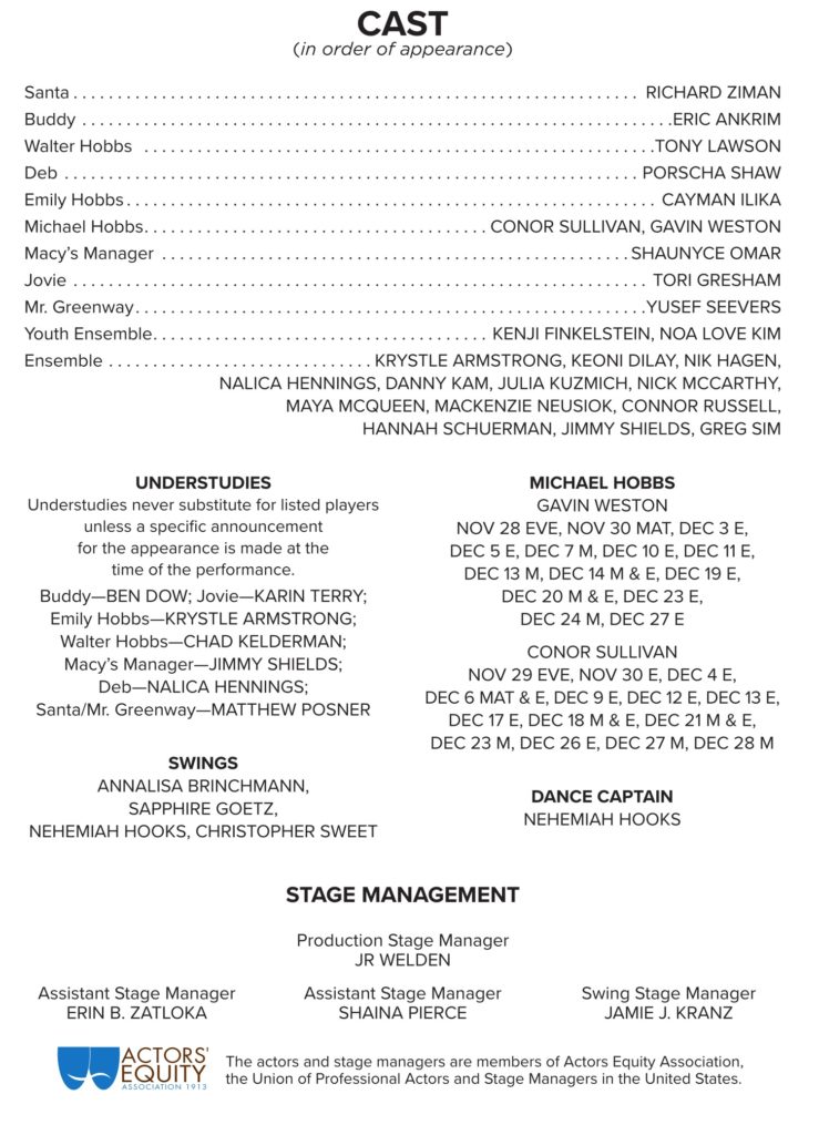 My Synopsis (No Spoilers): Inspired by the film, this light Christmas musical follows Buddy who realizes he’s a human and not a North Pole elf. He journeys to New York City to find his biological father.