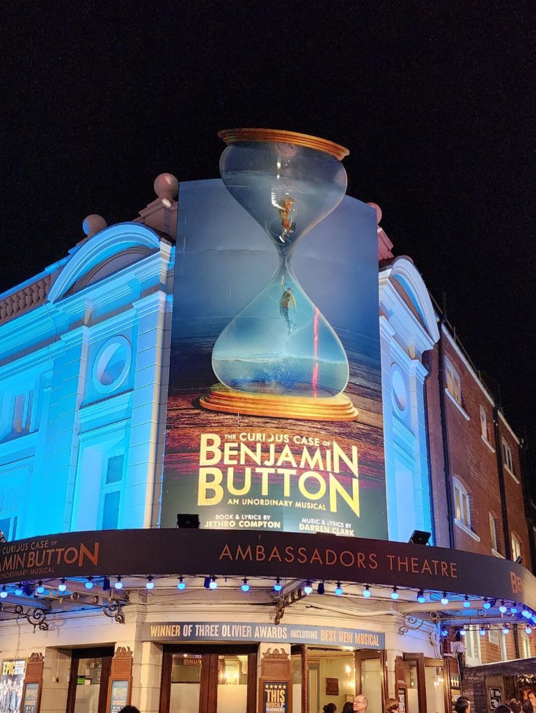 Elevator Thoughts (aka Tweet): Jethro Compton & Darren Clark’s The Curious Case of Benjamin Button musical at the Ambassadors Theatre. A remarkable feat of talent where the actors sing, dance, *AND* accompany themselves all at the same time. Music vibes similar to Come From Away. Funny running gag of mixed-up sayings. Starring John Dagleish. #time