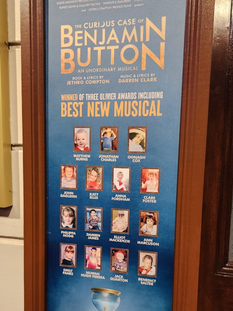 Prior Exposure/Knowledge Required: If you’re familiar with the short story or the film, you might find this adaptation more accessible. But don’t expect it to follow the movie closely, as I discovered. While I’ve seen the film, I haven’t read the original story, which I suspect this musical draws from more faithfully. For instance, in the musical, Benjamin Button doesn’t begin life as an infant-sized old man, nor does he live the wide-ranging worldly life depicted on screen. His parents are also not a Black adopted couple, and the story’s tragedy diverges significantly from the film’s version.