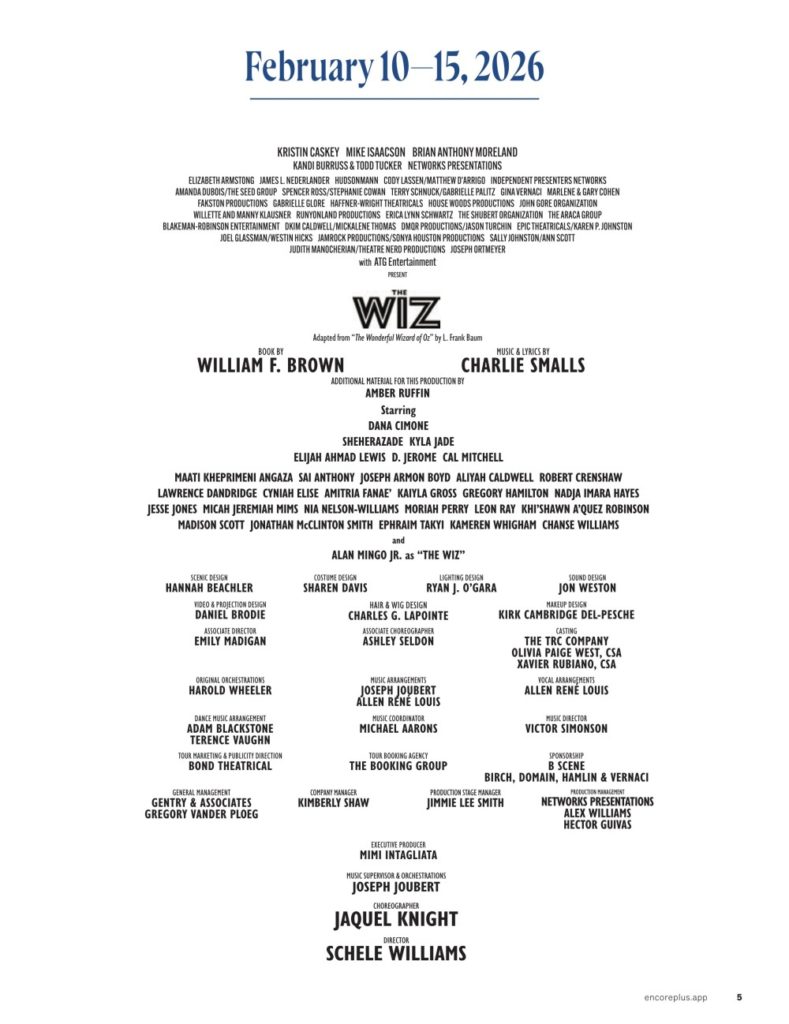 Synopsis from the Licensor or Theatre Company: This groundbreaking twist on The Wizard of Oz changed the face of Broadway—from its iconic score packed with soul, gospel, rock, and 70s funk to its stirring tale of Dorothy’s journey to find her place in a contemporary world. With direction by Schele Williams (The Notebook, revival of Disney’s Aida), choreography by JaQuel Knight (Beyoncé’s “Single Ladies,” Black Is King) and additional material by Tony-nominated and Emmy-nominated writer and TV host Amber Ruffin (The Amber Ruffin Show, Late Night with Seth Meyers), this dynamite infusion of ballet, jazz, and modern pop brings a whole new groove to easing on down the road. Everybody rejoice!